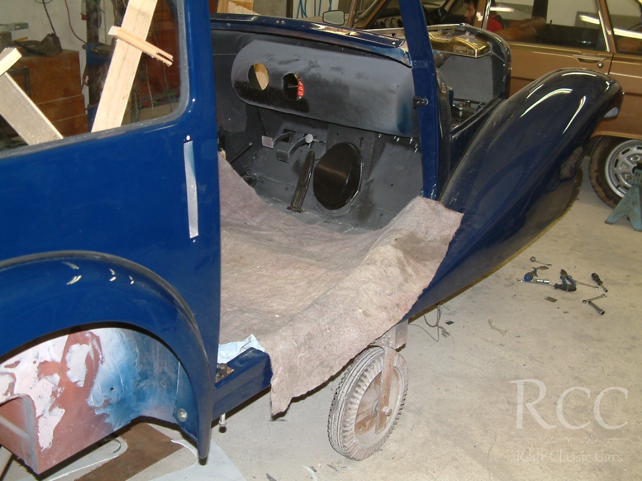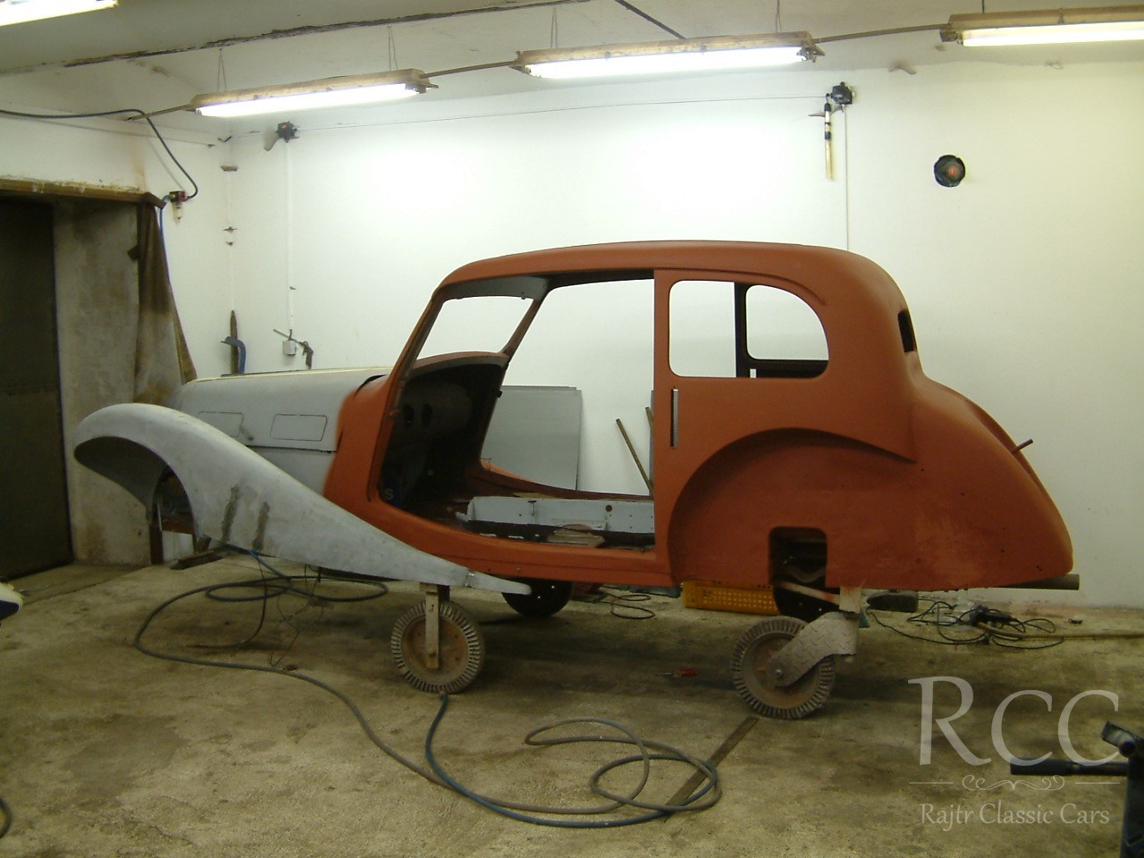 Tento konkrétní vůz prošel kompletní renovací napříč našimi specializovanými dílnami. Mechanické opravy, klempířské zásahy, lak i čalounění interiéru probíhaly přímo u nás, pod jednou střechou. Každý detail byl zpracován s důrazem na historickou věrnost i technickou kvalitu.
