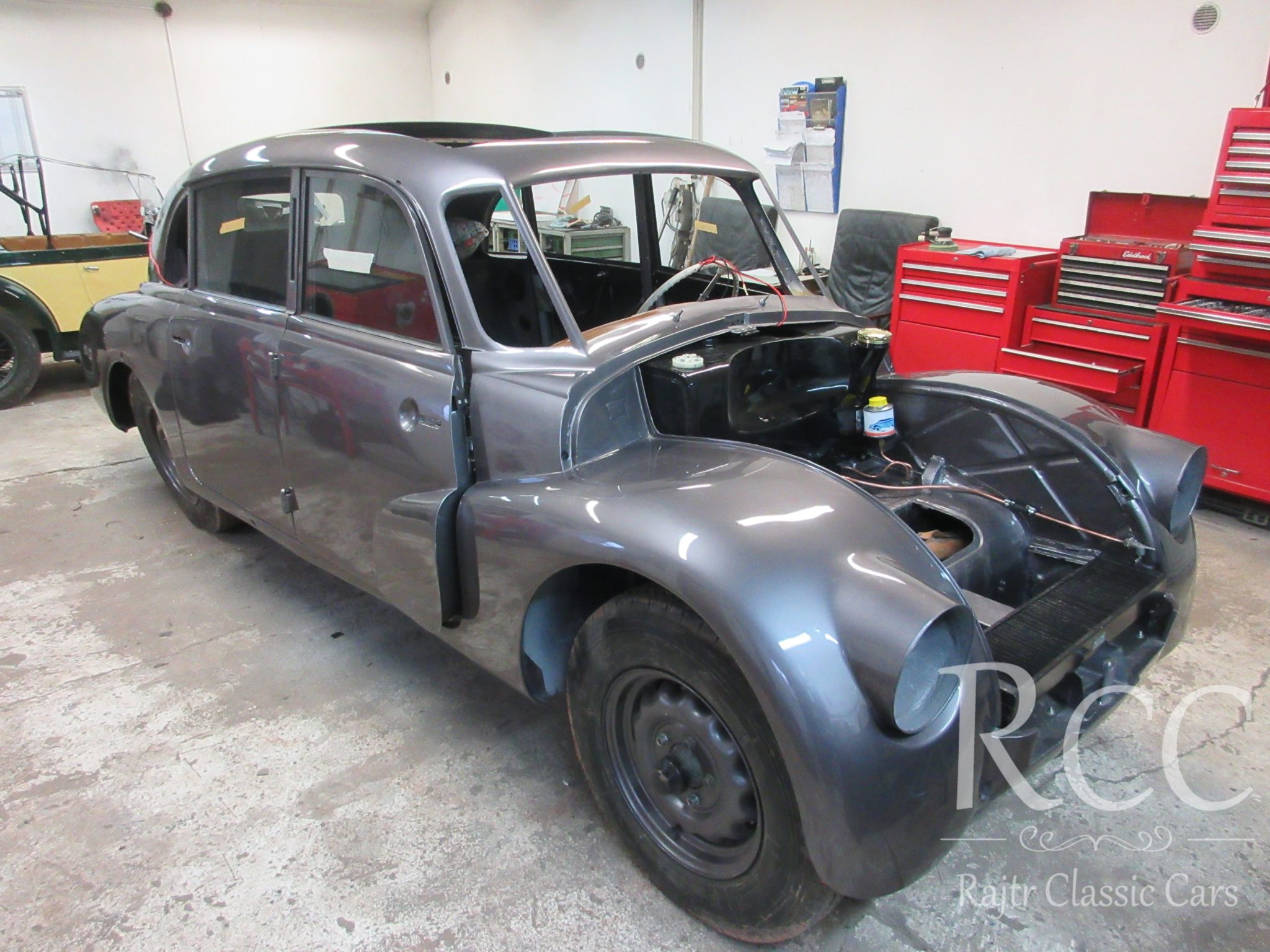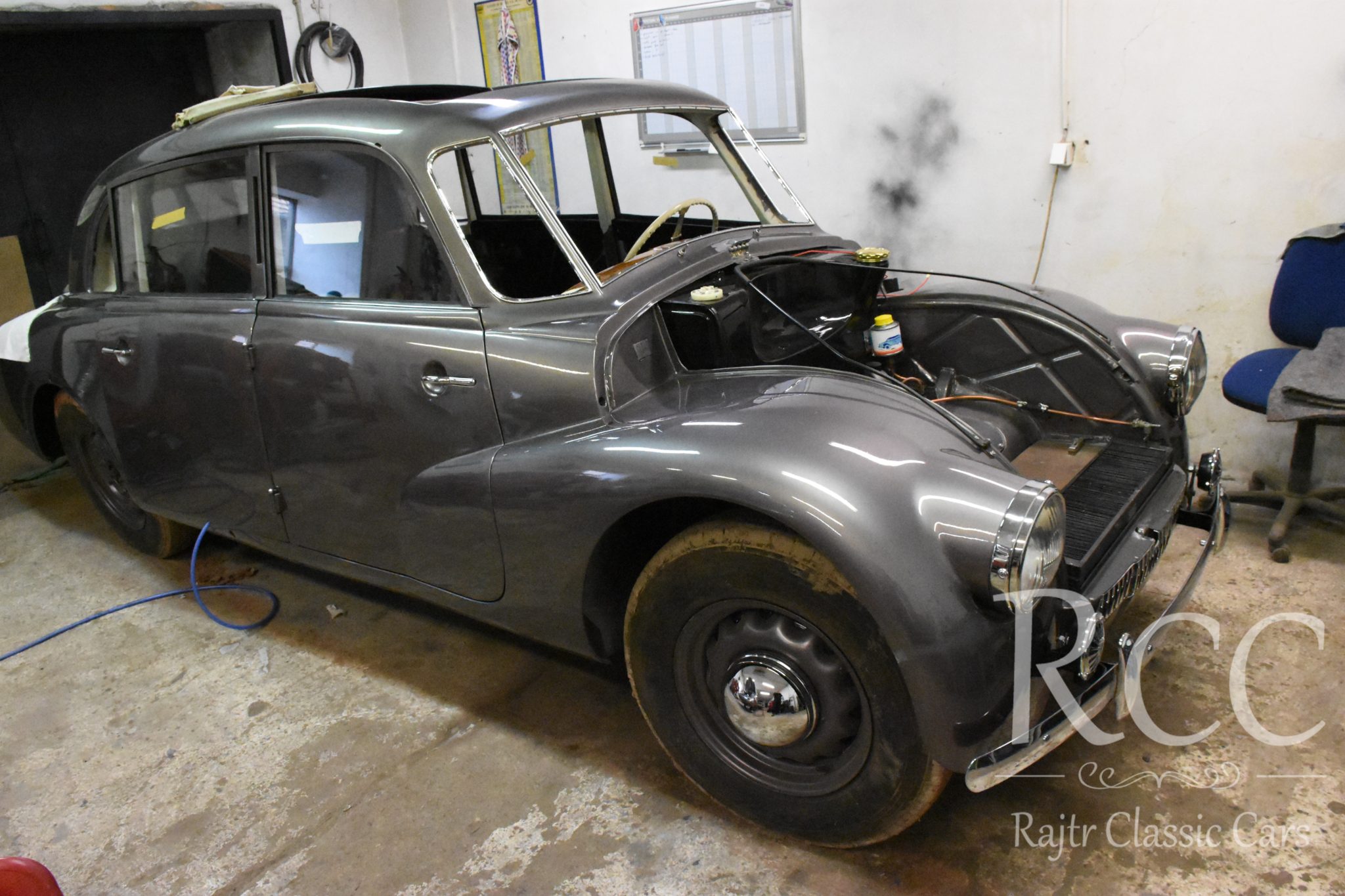 Tento konkrétní kus prošel důkladnou renovací v našich dílnách – od mechaniky přes karoserii až po interiér. Díky propojení všech prací pod jednou střechou jsme mohli zachovat autenticitu a zároveň zajistit špičkový stav.